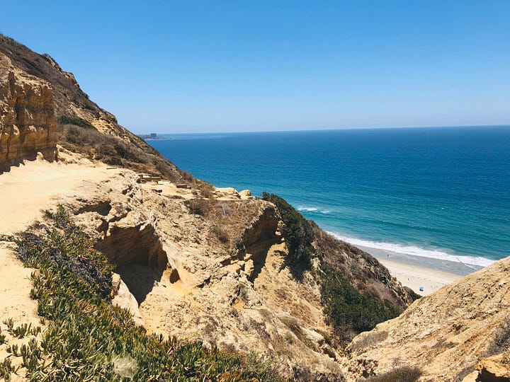 In June of 2018, my brother-in-law had just graduated from college and wanted to take a trip somewhere, somewhere warm and sunny where he could relax. After some research and weighing all the options, we decided on San Diego since none of us had been there, we could spend some time at the beach, and it was relatively inexpensive to get there from Portland, where we were living at the time. For some additional context, my brother-in-law was living with my partner and myself, since he was a student and we all benefitted from splitting the rent. Neither my partner nor my brother-in-law would consider themselves nudists. My partner is very supportive and participates when he feels up to it—he's been with me to beaches and clubs and he is able to enjoy it. My brother-in-law, on the other hand, knows that I'm a nudist but does not partake, does not engage, is not interested in the slightest. So, despite my willingness to bring him along to local beaches around the Portland area, he would never. However, while planning the trip to San Diego, I remembered that there was a great nude beach there: Black's Beach.